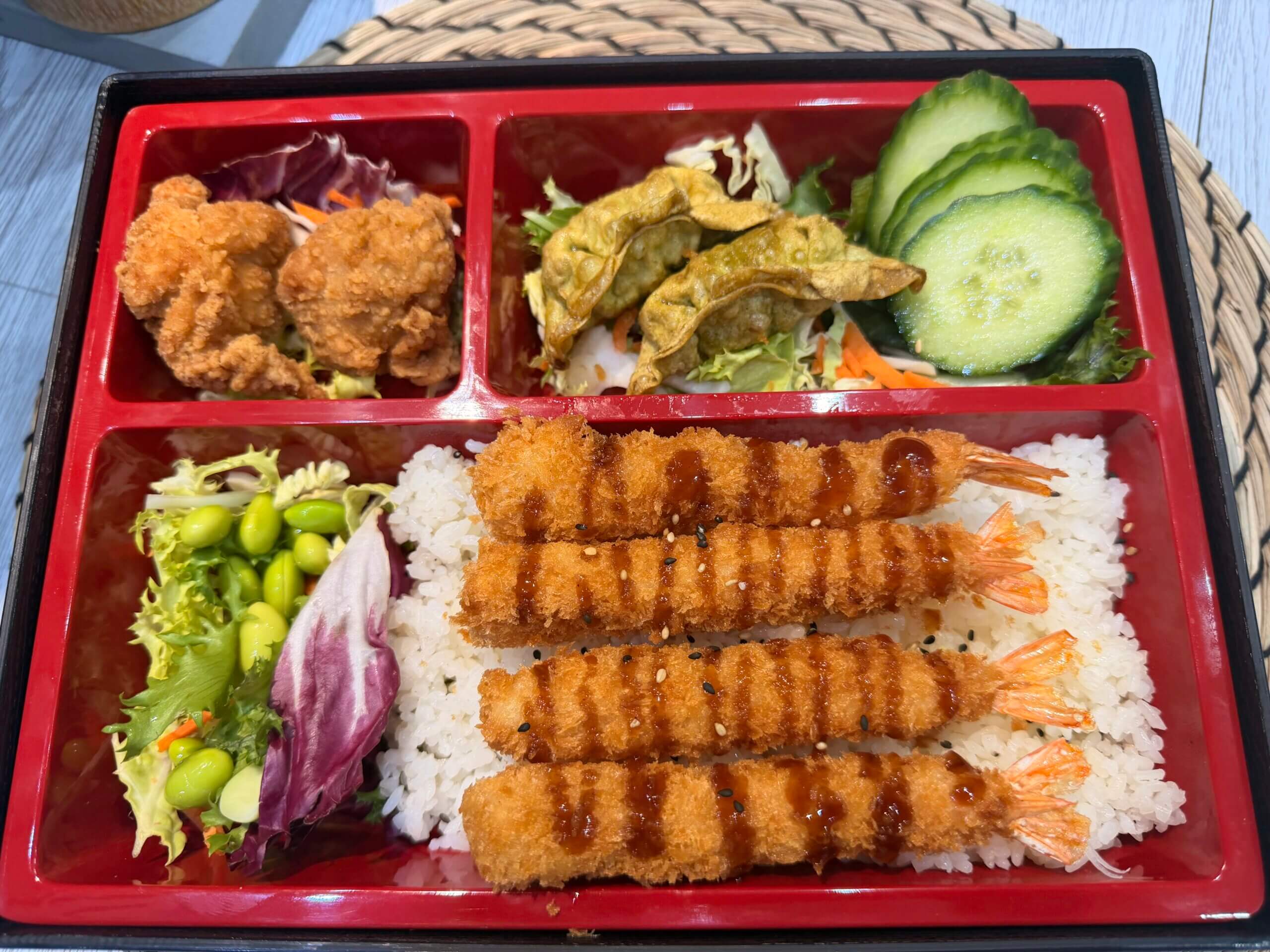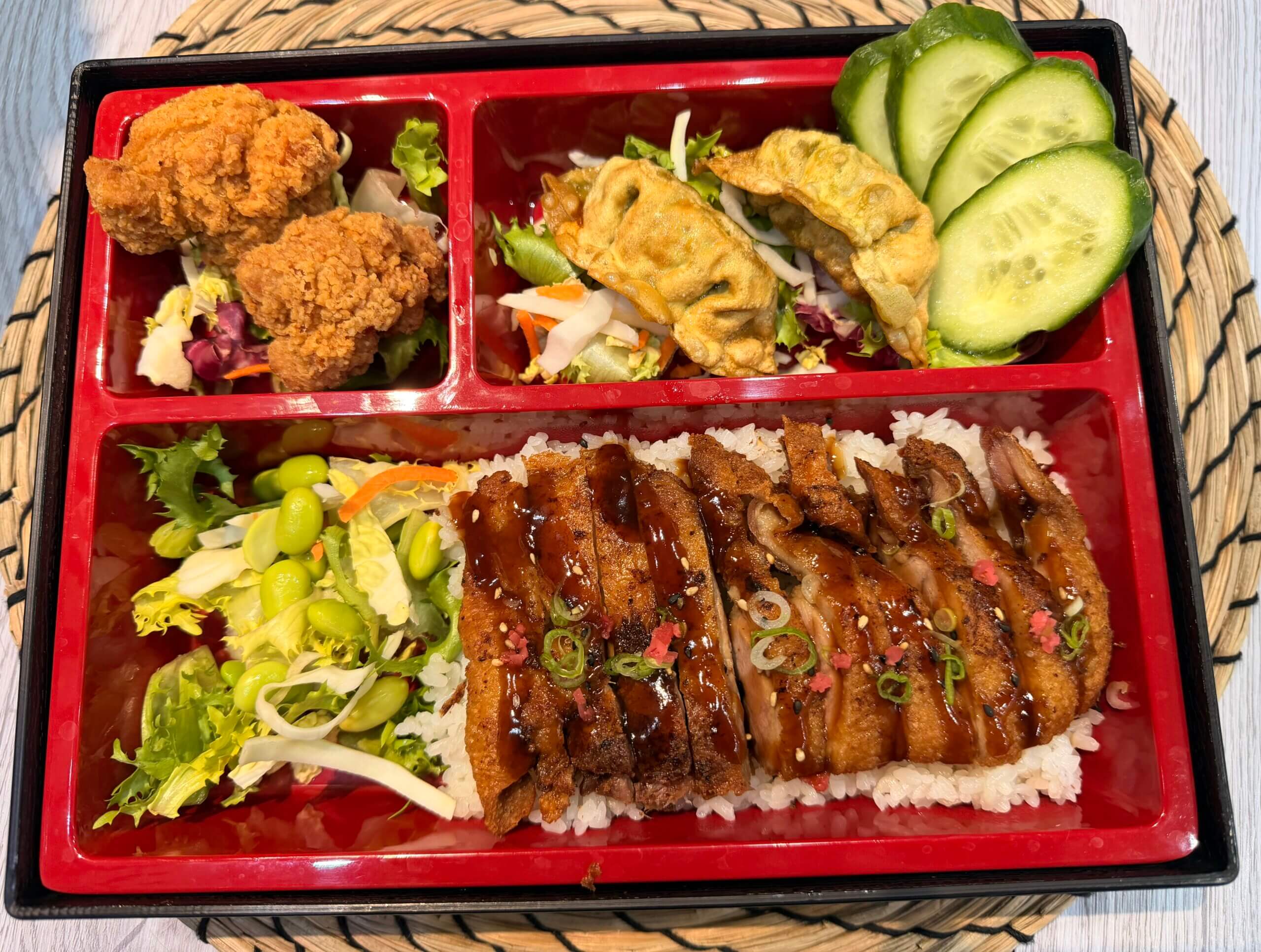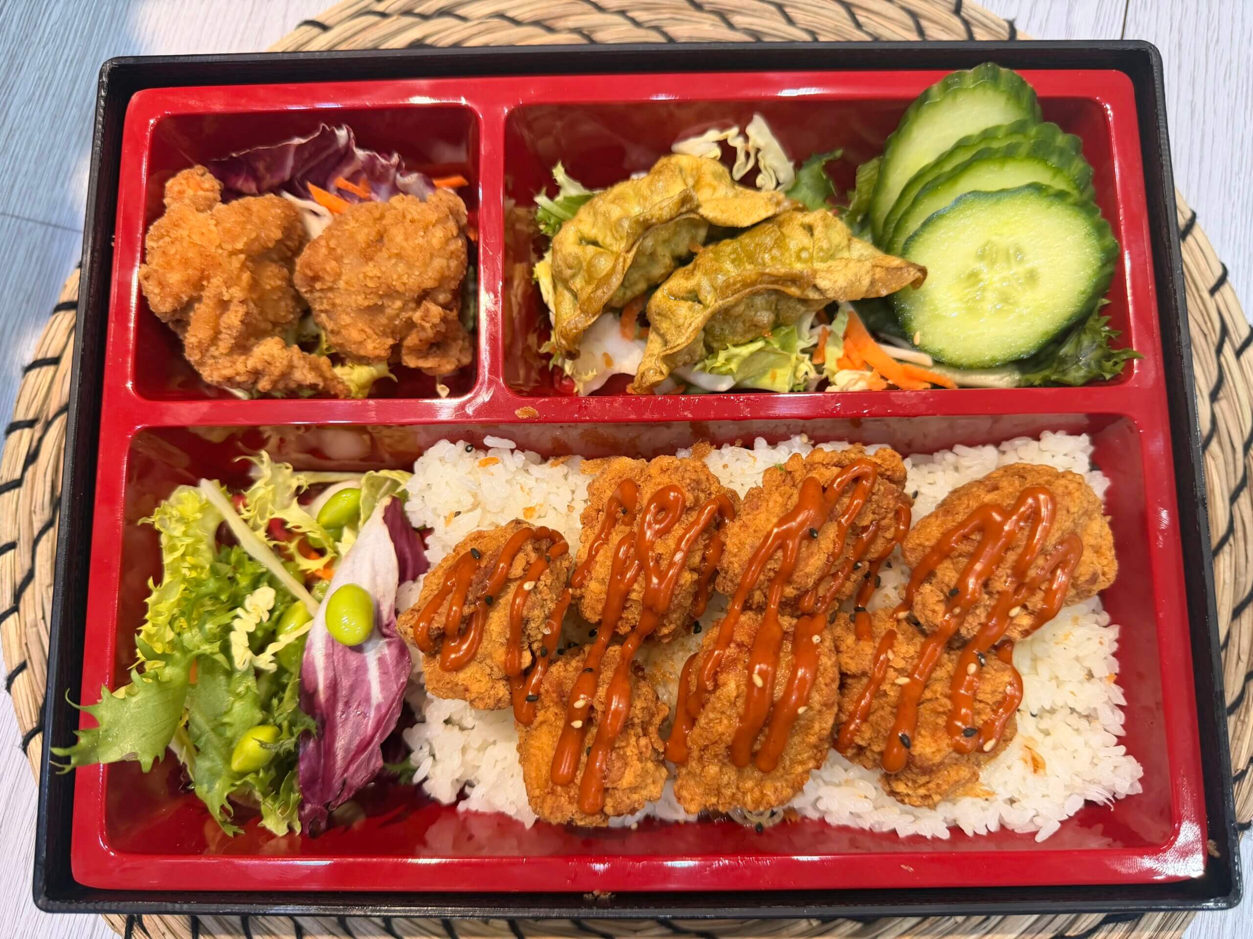 All Meal Boxes are served with Japanese white rice, 2 Veg Gyozas & 2 Tori Karaage.