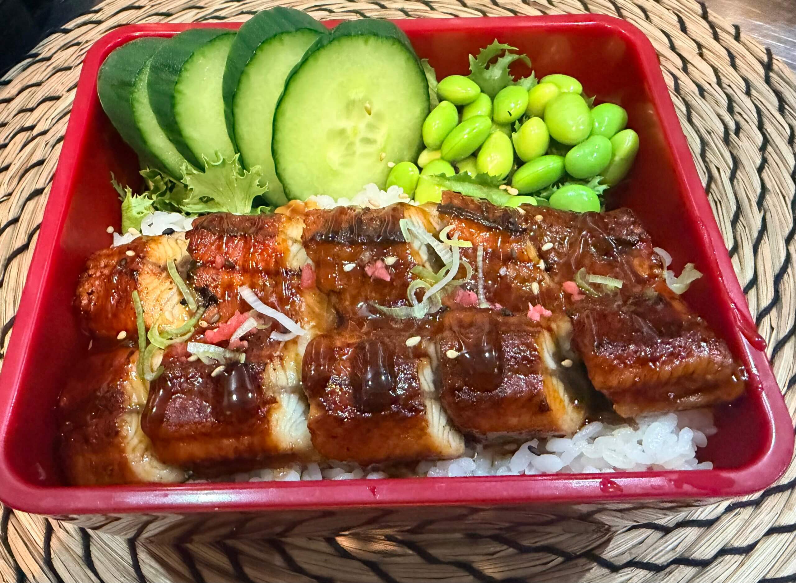 Unadon is a dish originating in Japan. It consists of a donburi bowl filled with steamed white rice and topped with fillets of eel grilled in a style known as kabayaki.